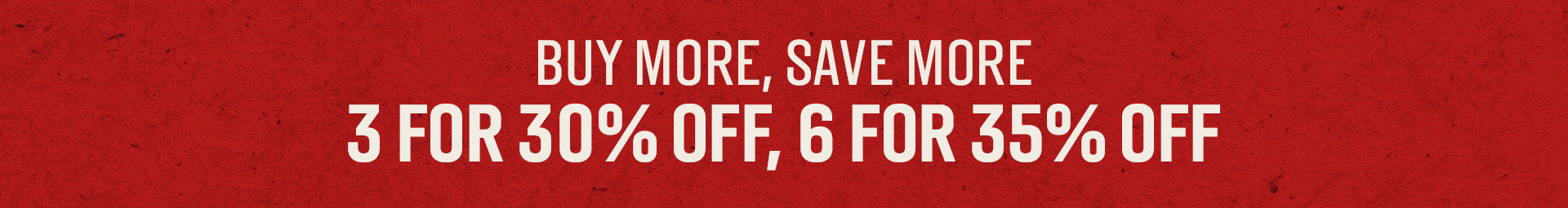 3 for 30% Off, 6 for 35% Off